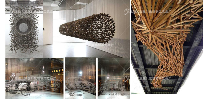 可利用一些簡單或原始材料通過吊掛呈現(xiàn)出相應主題吊飾造型 材料:球體,輕質(zhì)木料,泡沫,亞克力,EVI等各種材質(zhì)進行實現(xiàn)